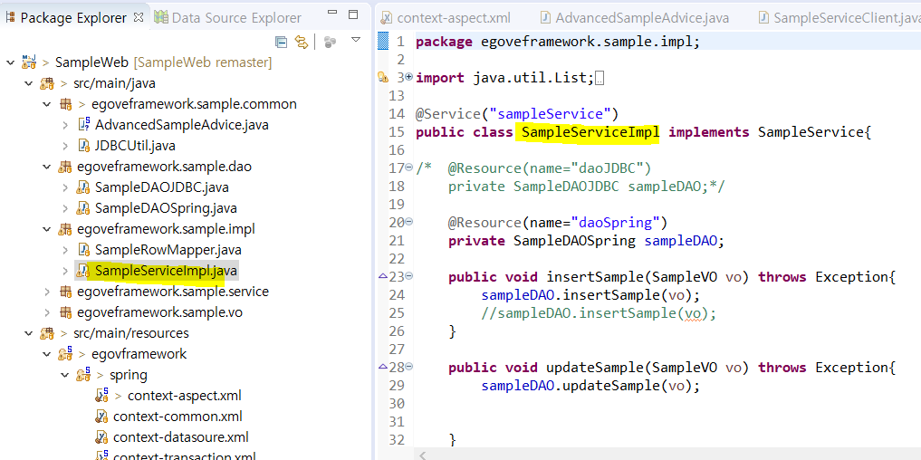표준프레임워크가 제공하는 EgovAbstarctDAO클래스를 상속받도록 한다.